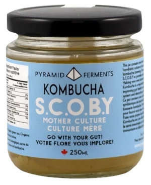 We also offer S.C.O.B.Y's or Kombucha Mothers; the main ingredient essential to making your own Kombucha at home. Our S.C.O.B.Y's are never dehydrated and are delivered in a highly concentrated and cultured liquid medium of live Kombucha culture, Organic Tea and Sugar.